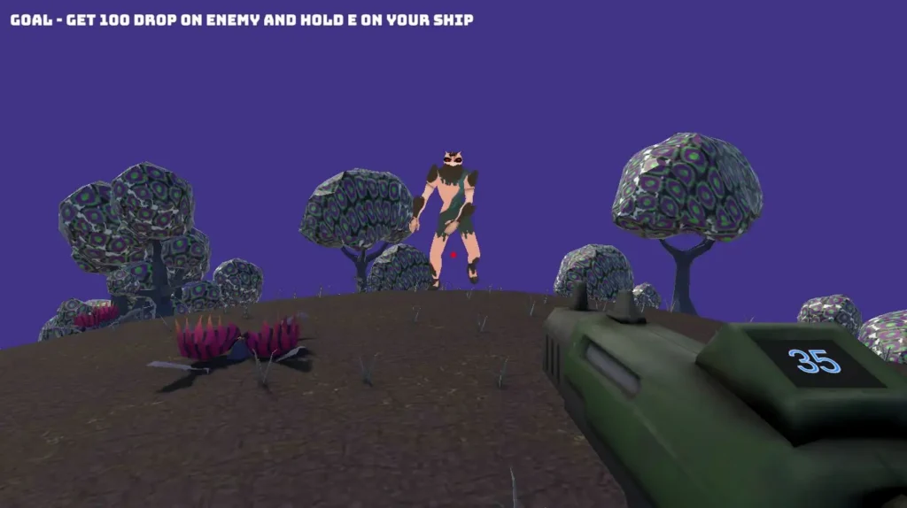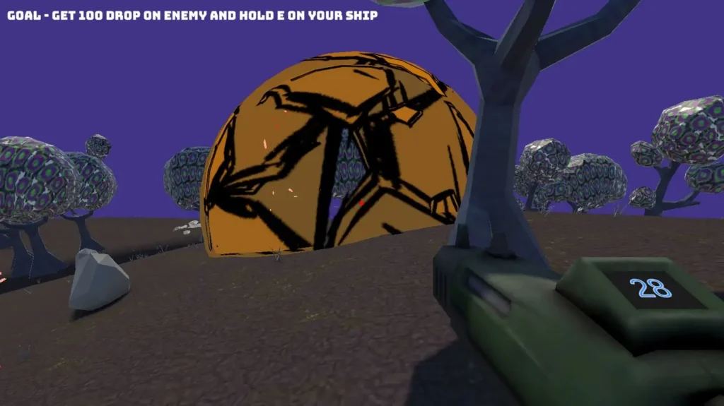 Le thème était « Strange Place » et nous avons discuter du sujet les deux premiers jours. Comme toute bonne Game Jam, nous avons complètement dévier du sujet, mais nous sommes partis sur un FPS avec un concept de changement de monde inopiné. Pour rester dans le thème, nous avons décidé de modéliser des aliens et des mondes étranges.